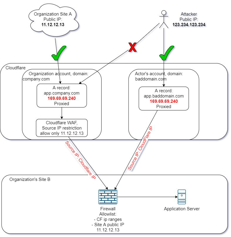 An attacker can create an A record on the Cloudflare DNS service pointing to the server’s original IP and set it to Proxied. In some cases this setup is equal to not having protections at all.