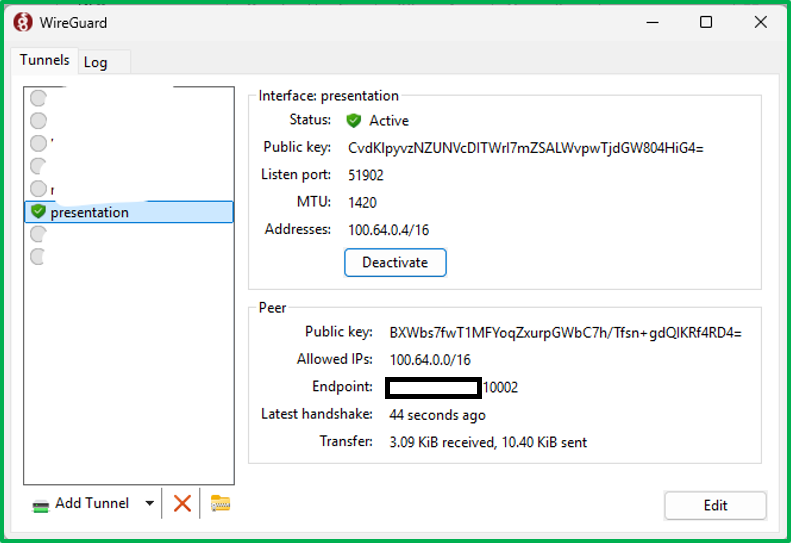 We can see the Wireguard private IP assigned to the operator is 100.64.0.2.